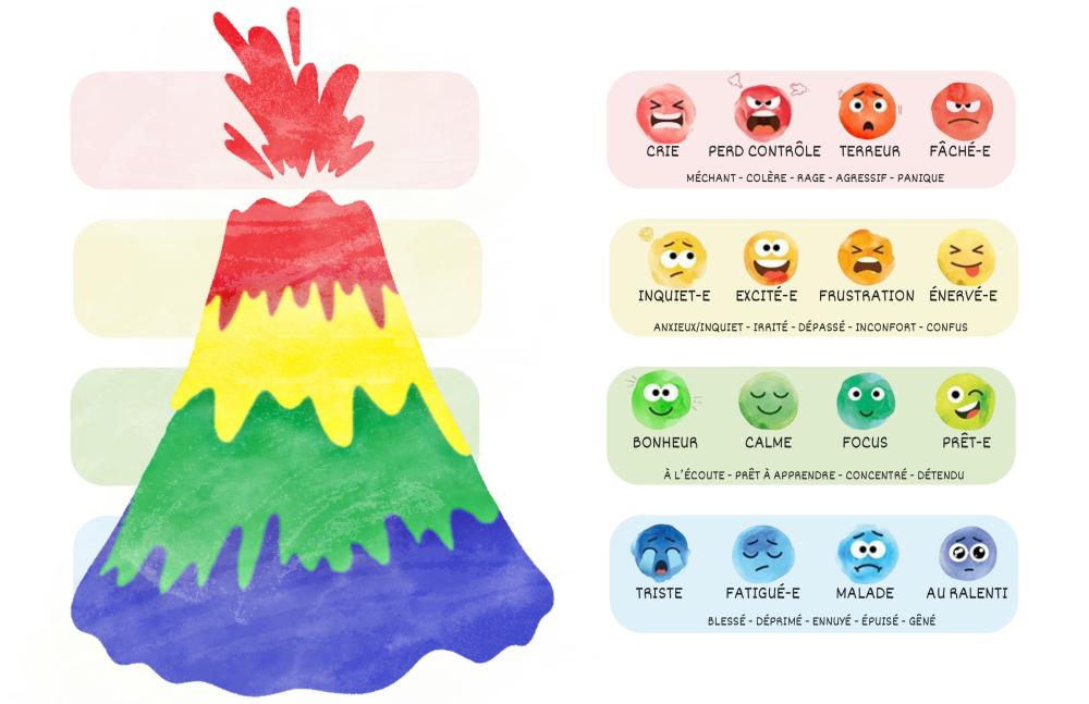 Par la suite, le groupe a abordé le « volcan des émotions », une technique qui consiste à apprendre et surtout à comprendre comment gérer ses sentiments. Son objectif principal est de se calmer et de ne pas arriver au stade dit « rouge ». « Pour ma part, j’utilise la thérapie d’écriture pour exprimer mes émotions qui encombrent mon esprit et qui peuvent représenter un poids si elles ne sont pas évacuées, souligne Souilla. Je pense que c’est un exercice libérateur, cela me permet effectivement de transformer mes pensées confuses en phrases claires et parfois en me relisant, je me rends compte que ce qui me semblait insurmontable est finalement gérable. »