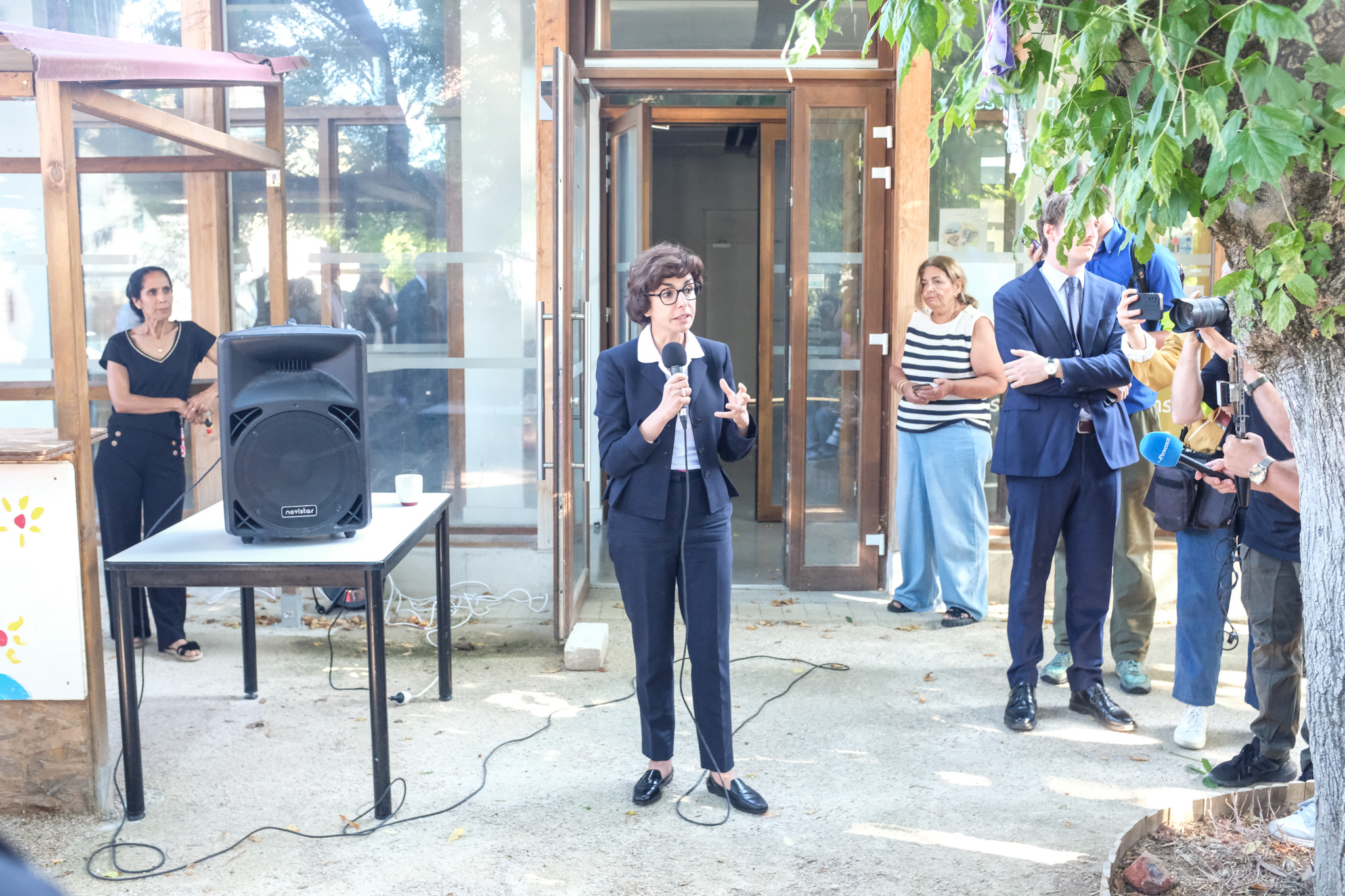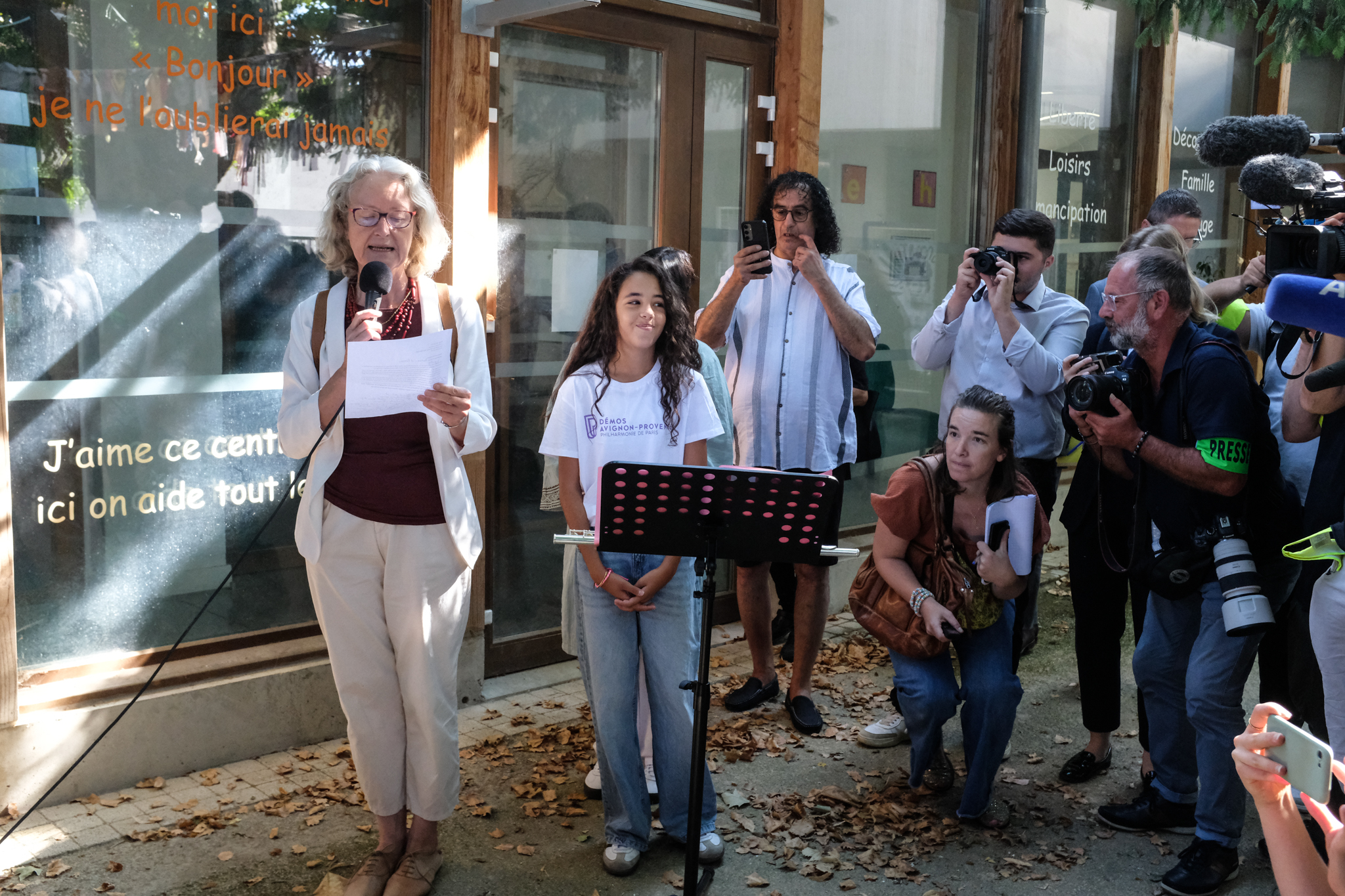 Etaient présents Cécile Helle (maire d’Avignon), Thierry Suquet, (Préfet de Vaucluse), Michel Bissière (Conseiller régional), Raphaël Arnault (député 1ère circonscription Vaucluse), Françoise Nyssen (présidente du Festival d’Avignon), Tiago Rodrigues (directeur du Festival d’Avignon), Claude Morel (vice-président délégué aux spectacles vivants au Grand Avignon), Olivier Bastide (président Francas 84), Isabelle Ronzier (coordinatrice Demos Avignon-Provence), Mathieu Castelli (directeur Le Totem), Elsie Guillaume (présidente de la Fédération des Centres Sociaux de Vaucluse), Olivier Przybylski Richard (directeur des Centres de Jeunes et de Séjours du Festival d’Avignon).