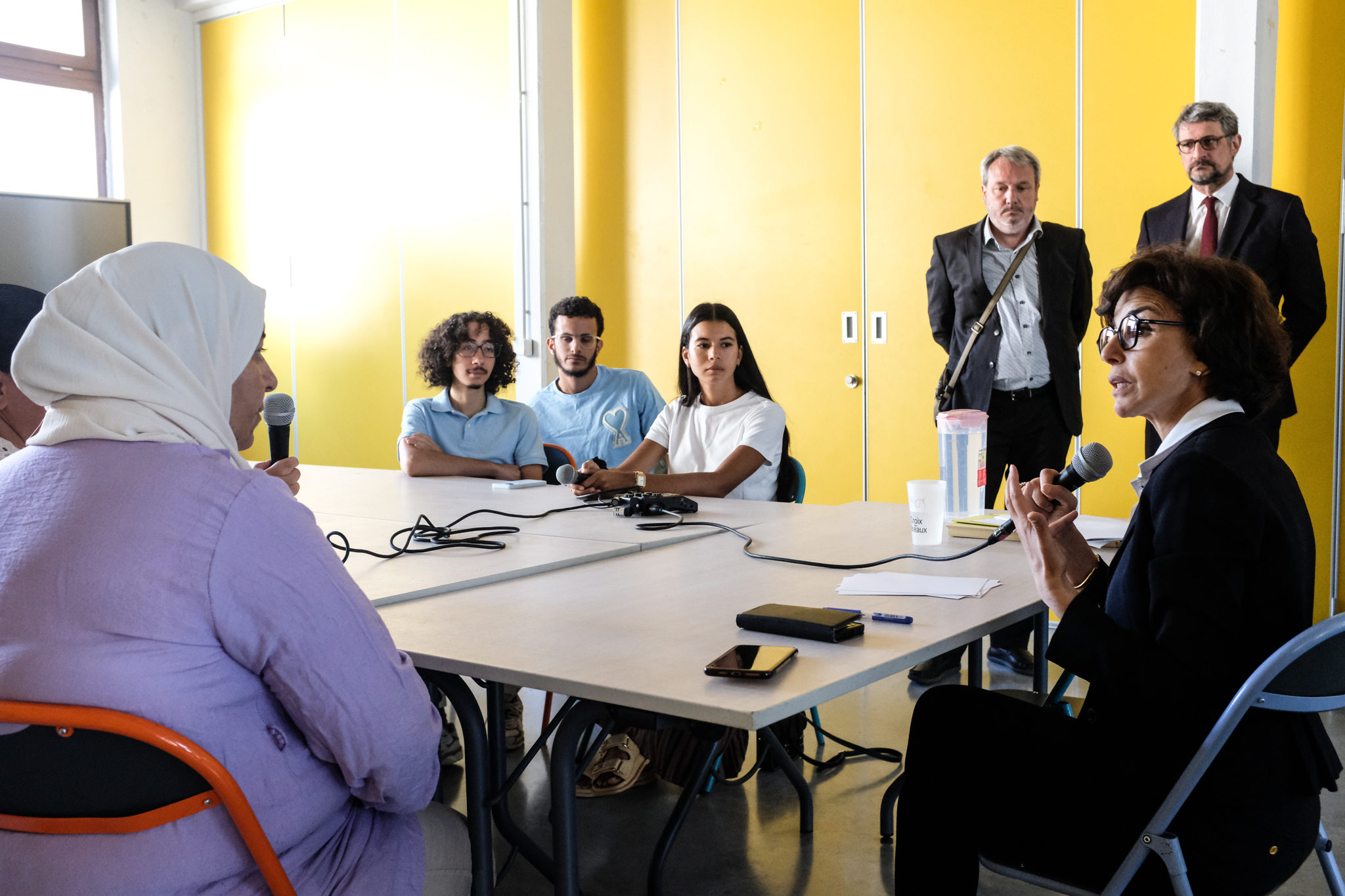 Avant un déplacement dans un Ehpad près de la Rocade, pour découvrir le nouveau centre d’art de la Collection Lambert, Rachida Dati, ministre de la Culture, est venue rendre visite aux équipes de l’Espace Social et Culturel de la Croix des Oiseaux.
