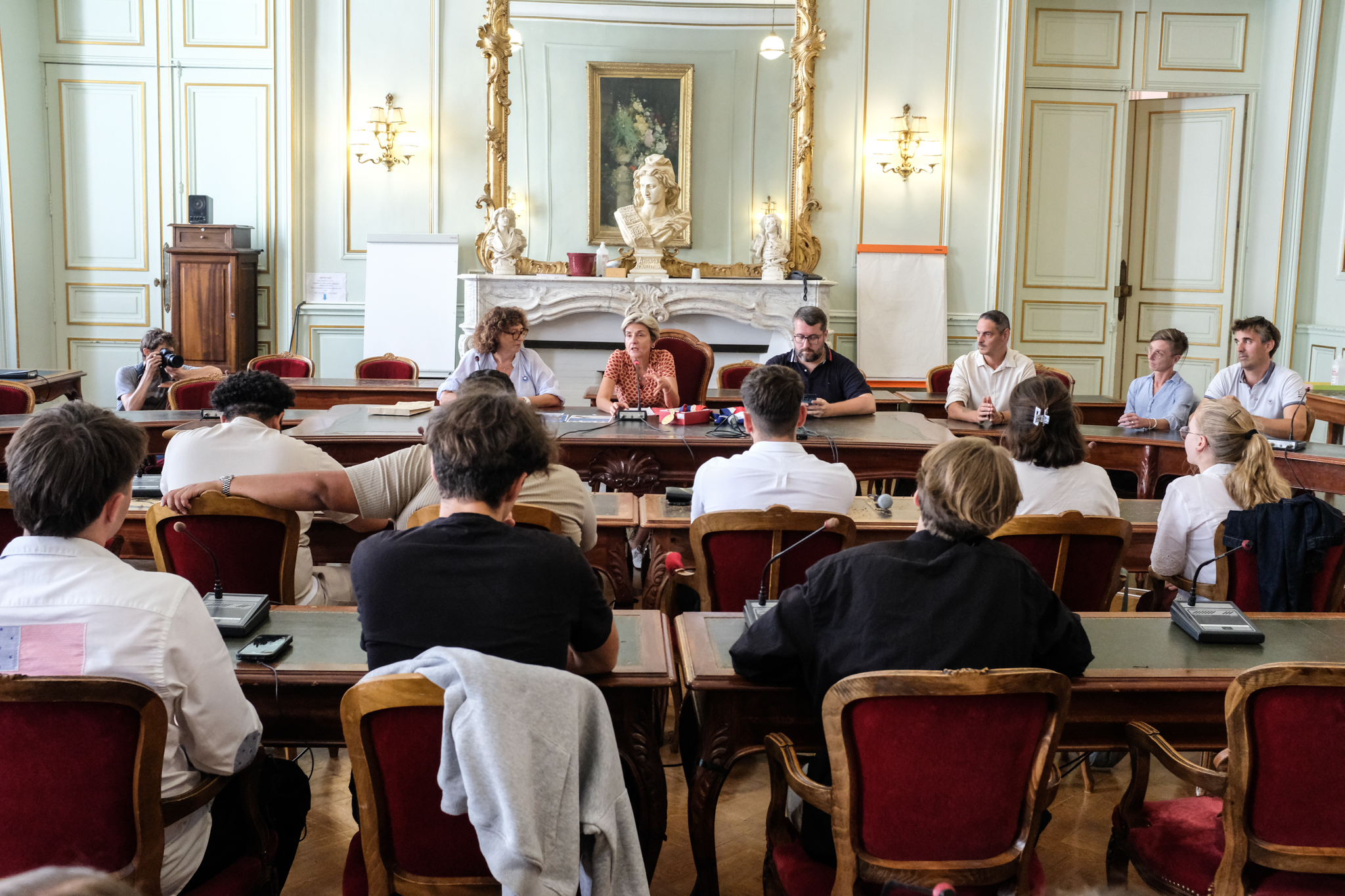 Vendredi 5 septembre, le maire Cécile Helle leur avait promis une rencontre à l’Hôtel de Ville. Pendant près de deux heures, les jeunes ont pu échanger avec Cécile Helle sur son rôle de maire, ses plus grandes réussites à l’aube de la fin de son dernier mandat, sa vision de l’Europe, entre autres. Enrichis par leurs visites, ces derniers ont pu témoigner de l’importance de travailler sur notre histoire commune à l’heure des crispations identitaires et de la montée des extrémismes. Après une intervention de Sabi Mara, autrice de Cartes Postales, un recueil de poèmes sur sa double culture franco-bosnienne, ils ont lu deux poèmes.