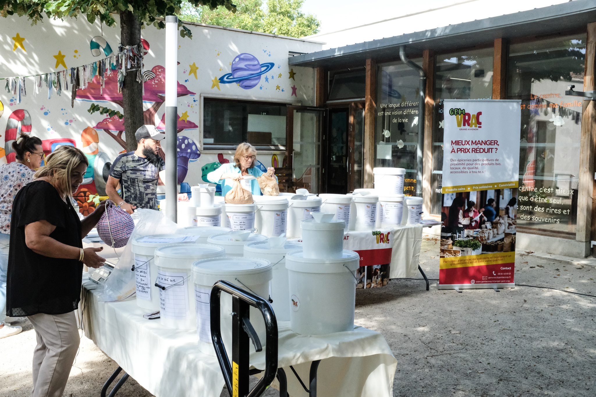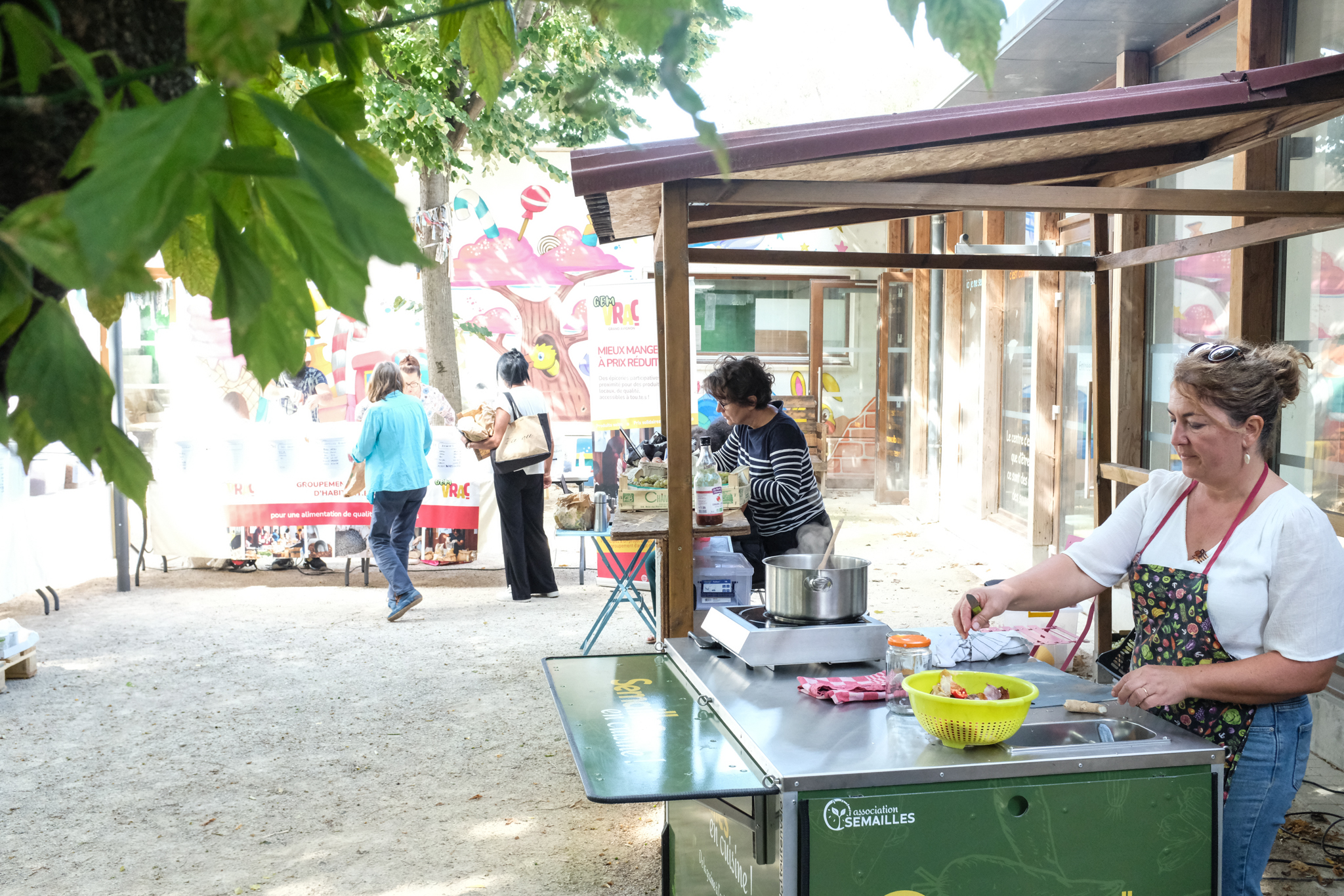 Le 8 septembre, les équipes de Semailles et GEM la Coop’ étaient de retour dans la cour de l’ESC Croix des Oiseaux pour un marché de rentrée riche en fruits et légumes locaux, et autres produits d’épicerie.