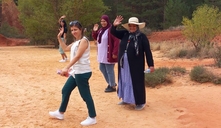 Quoi de mieux que de commencer la rentrée par une balade à Rustrel, au cœur du Colorado Provençal ! Un lieu unique en France situé à moins d’une heure d’Avignon… Un vrai décor de carte postale que nos adhérentes du Pôle Familles ont adoré. Accompagnée par Jessica, la coordinatrice du Pôle Familles, Zahia, Carole, Zohra, Naima, Souhila, Rabhia, Setti et Esengul ont été subjugués par ces anciennes carrières d’ocres à ciel ouvert aux allures de canyon.