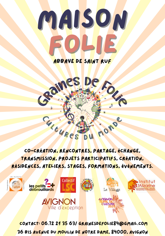 La soirée du 4 octobre au Théâtre de l’Adresse débutera par une courte animation musicale à partir de 18h dans le square Sixte Isnard (au niveau du 24 avenue de la Trillade), puis devant les locaux de l’Association Rosmerta et terminera son parcours au Théâtre de l’Adresse où se déroulera la soirée festive. Il sera possible d’y partager un repas tiré du sac.