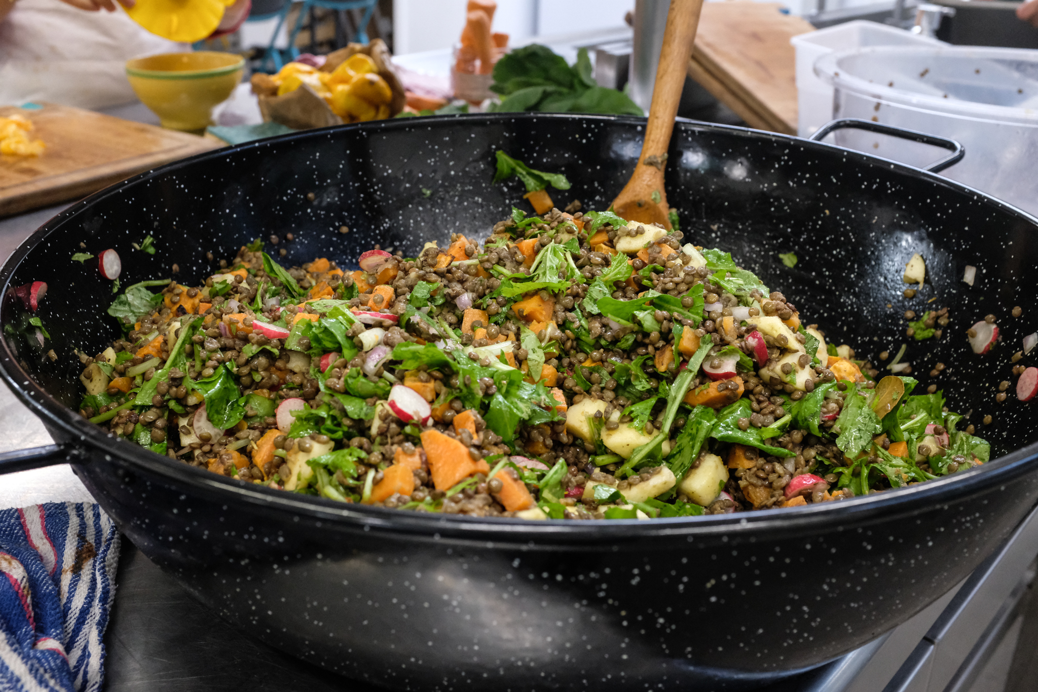 Au menu ? Une salade de lentilles, accompagnées de patates douces, de pommes et d’une sauce à l’orange. Ont suivi des lasagnes végétariennes et un merveilleux gâteau au chocolat et à la courge. Un délice !