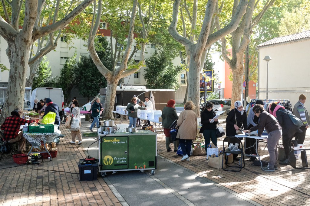 Jusqu’ici organisé en petit comité dans la cour de l’ESC Croix des Oiseaux un lundi par mois, le marché solidaire et bio a désormais lieu place de la Croix des Oiseaux (Tambour d’Arcole, en face de l’arrêt de bus Croix des Oiseaux, ligne 6) afin d’en faire profiter un maximum d’habitants. Et ce, toujours un lundi par mois, de 11h à 13h !