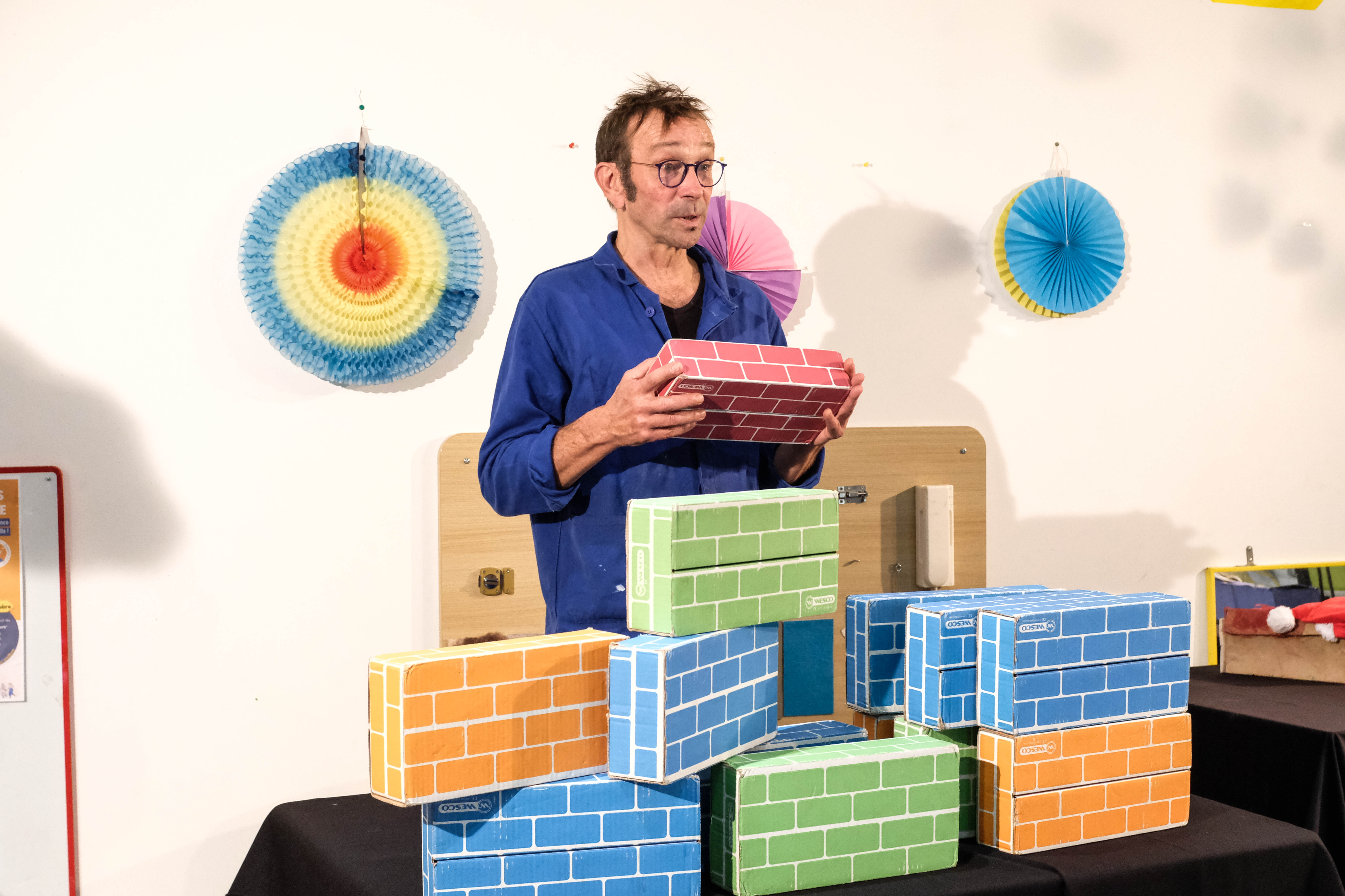 Yvan Ferré, du Collectif La Sauce aux Clowns, a organisé une sortie découverte de l’éco-comptoir de l’association Les Petites Choses. Une opportunité donnée aux enfants et aux mamans de sélectionner des boîtes et des matériaux de toutes sortes, à leurs goûts, afin d’imaginer comment habiter leurs futures boîtes à histoires.