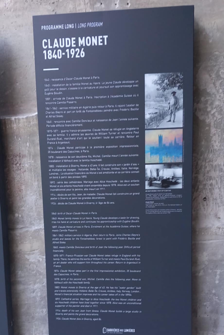 Monsieur Rousseau, dit le douanier, donne l’impression d’avoir voyagé partout alors qu’il n’a jamais quitté Paris. Il a créé son propre monde. Émerveillement : c’est le mot de la journée. Les jungles, les plantes exotiques, les couleurs, les rêves, le monde imaginaire… Avec Monet et ses fleurs, tout devient plus reposant, la tête se vide, l’esprit respire.