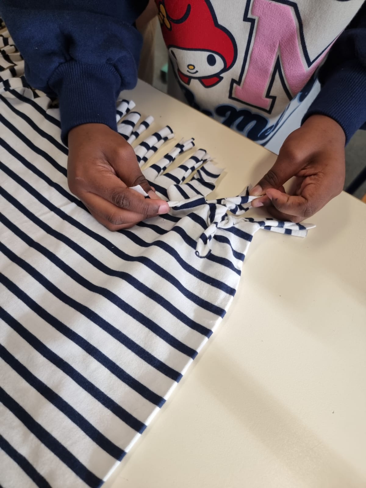 Aëlys : Ces vêtements sont fabriqués au Bangladesh, au Cambodge, en Inde, en Chine ou au Vietnam, … on l’a vu sur les étiquettes. On utilise des matières comme le coton, la laine, le polyester…
