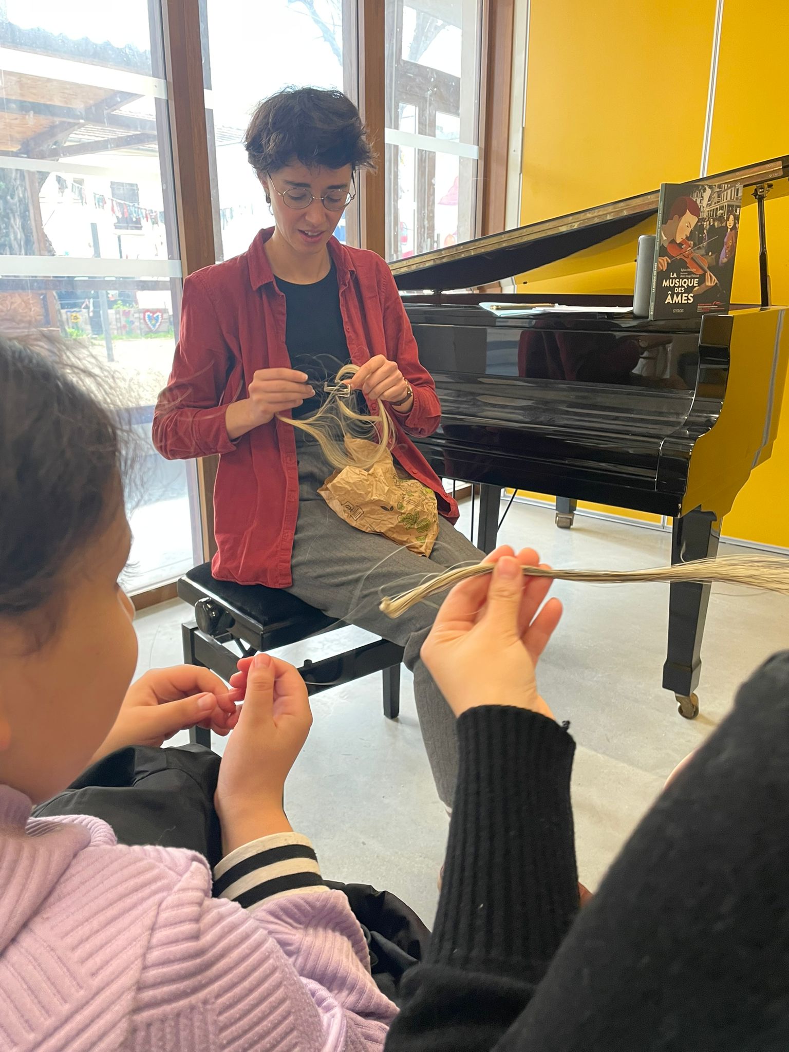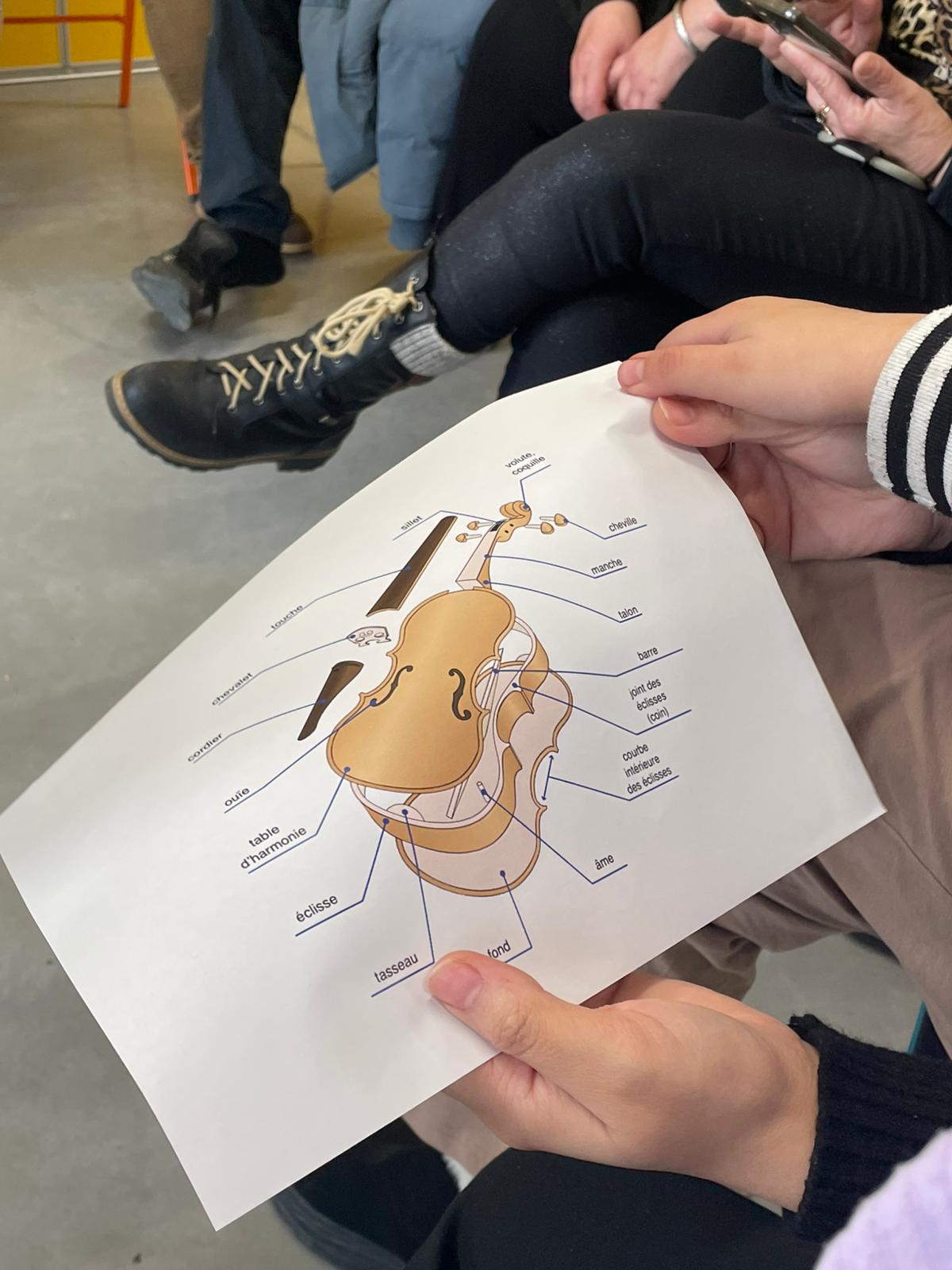 Laia a notamment évoqué le personnage de Simon, dont le père était un luthier renommé, afin de présenter en profondeur les caractéristiques du violon (l’archet, le crin de cheval, le chevalet, etc.). Sans oublier de parler de l’âme, ce petit bâtonnet en bois installé dans la caisse de résonance du violon, sous le pied du chevalet, du côté de la corde de Mi. Faisant le lien entre le fond et la table d’harmonie, il a pour fonction de transmettre les vibrations dans tout le corps. Comme son nom l’indique, c’est la pièce maîtresse pour l’accord des vibrations.