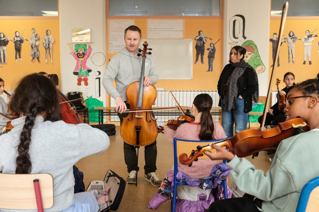Avignon accueille deux orchestres Démos sur son territoire : une version “classique” et une version “avancée” pour les enfants ayant terminé Démos. Mais Démos, c’est quoi ? Le Dispositif d’Education Musicale et Orchestrale à vocation Sociale est créé en 2010 à la Cité de la Musique (Paris). Son objectif : réduire les inégalités d’accès à la musique. Pendant trois ans (CE2-CM2), 80 enfants par orchestre sont accompagnés par un binôme composé de musiciens professionnels et d’un référent social. Dans leur école, un centre social ou une salle de concert, ils font deux ateliers hebdomadaires par groupe (5 par orchestre) et répètent quatre fois par an tous ensemble. Et pour que le projet fonctionne, comment cela se passe-t-il ? En 2024, la Philharmonie de Paris lançait un appel à projet national sur le travail des référents sociaux et l’engagement des familles dans Démos. C’est ainsi que notre groupe de six chercheur.ses – Talia Bachir-Loopuyt, Guillaume Lurton, Lorraine Roubertie-Soliman, Rémi Boivin, Sanhita Sana et moi-même – issus des universités de Tours et de Poitiers (laboratoires CITERES et CEREGE) a souhaité y répondre.