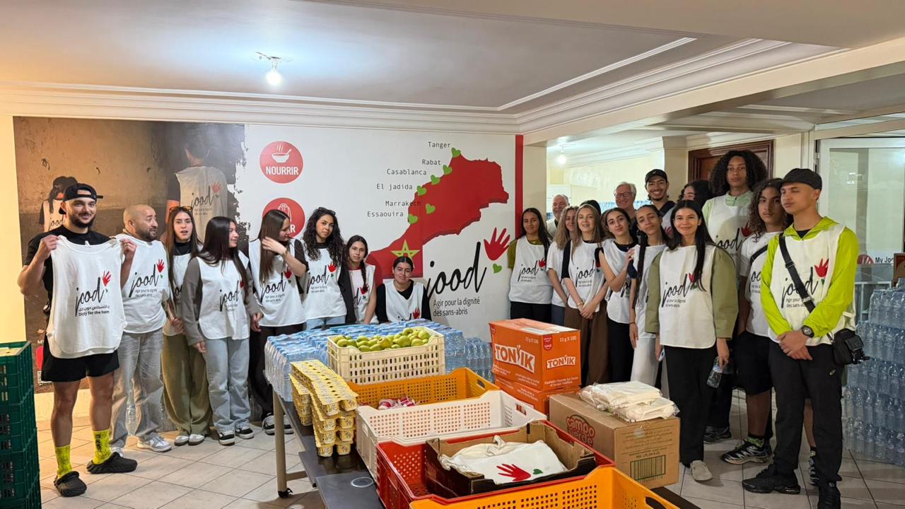 Préparation et distribution de repas à Casablanca pour les plus démunis avec l’association JOOD, un mouvement citoyen qui aspire à promouvoir la protection sociale et réduire les inégalités en soutenant toute personnes en situation de détresse et de précarité.