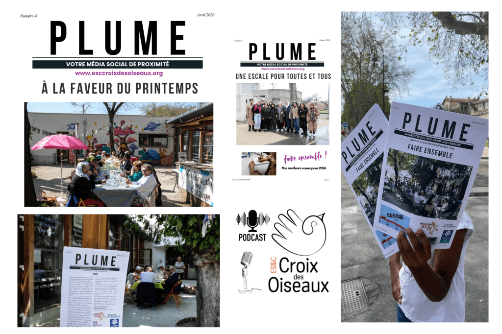 Née à l’automne 2024 à la suite de plusieurs Cafés Causette et à la demande d’habitant·e·s du quartier Nord Rocade qui suivaient des ateliers journalisme, la gazette Plume incarne peu à peu son projet ambitieux de média social de proximité à Avignon. Par sa personnalité et son ancrage, cette gazette se veut loin des clichés et autres préjugés sur les quartiers populaires. Un média participatif et citoyen dont l’objectif majeur est de valoriser les atouts de nos pluralités, tout comme d’autres sujets qui font l’actualité de la ville d’Avignon.