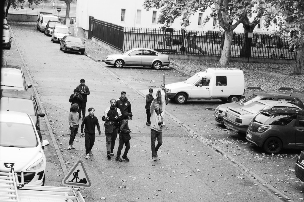 Encadré par le photographe Thomas Bohl, un groupe de reporters du Club Jeunes de l’ESC Croix des Oiseaux a participé du 21 au 24 octobre 2025 à des ateliers photo dans le cadre d’un projet mémoriel porté par la Maison Jean Vilar sur ces lieux dits extras du Festival d’Avignon. A commencer par l’ancienne tour B du quartier de la Croix des Oiseaux détruite en mars 1998. Cinq ans plus tôt, en 1993, des comédiens de la compagnie arlésienne Ilotopie s’y étaient installés pour créer un spectacle avec les habitants programmé au Festival d’Avignon. Travail en salle, techniques du portrait, improvisation d’une partie de foot dans les couloirs du centre social au bon souvenir des mises en scène imaginées par la compagnie ilotopie, balade et rencontres dans le quartier, … Immersion dans les coulisses du Laboratoire de Photographie Sociale et Populaire.